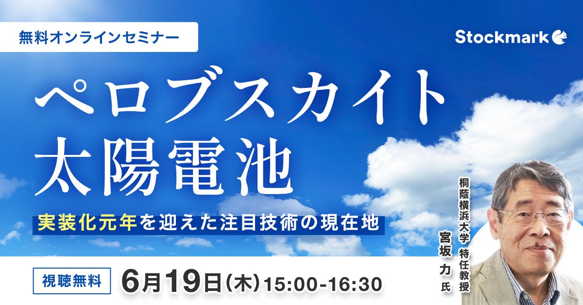【6月19日(木) 無料セミナー】『ペロブスカイト太陽電池 - 実装化元年を迎えた注目技術の現在地』を開催(ストックマーク主催)