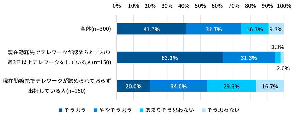 3.有効回答数:300名(勤務先でテレワークが認められており週3日以上テレワークをしている方:150人、