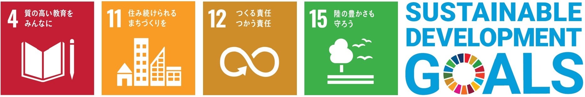 目標4 質の高い教育をみんなに 目標11 住み続けられるまちづくりを 目標12 つくる責任つかう責任 目標15 陸の豊かさも守ろう |