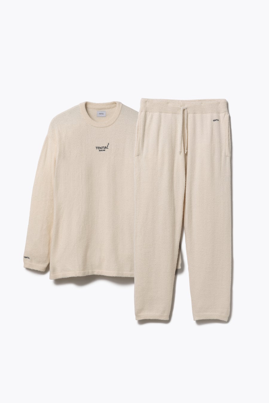 毛足のあるシャギーヤーンを使用したニット素材により、肌への摩擦が少なく優しい着心地を実現しました。とろけるように柔らかく滑らかな質感とストレッチ性が特徴なので、機能性はもちろんのこと、肌触りも重視したナイトウェアをお求めの方におすすめです。薄手のニット素材を採用しており、気温の変化が激しい季節も快適にお使いいただけます。