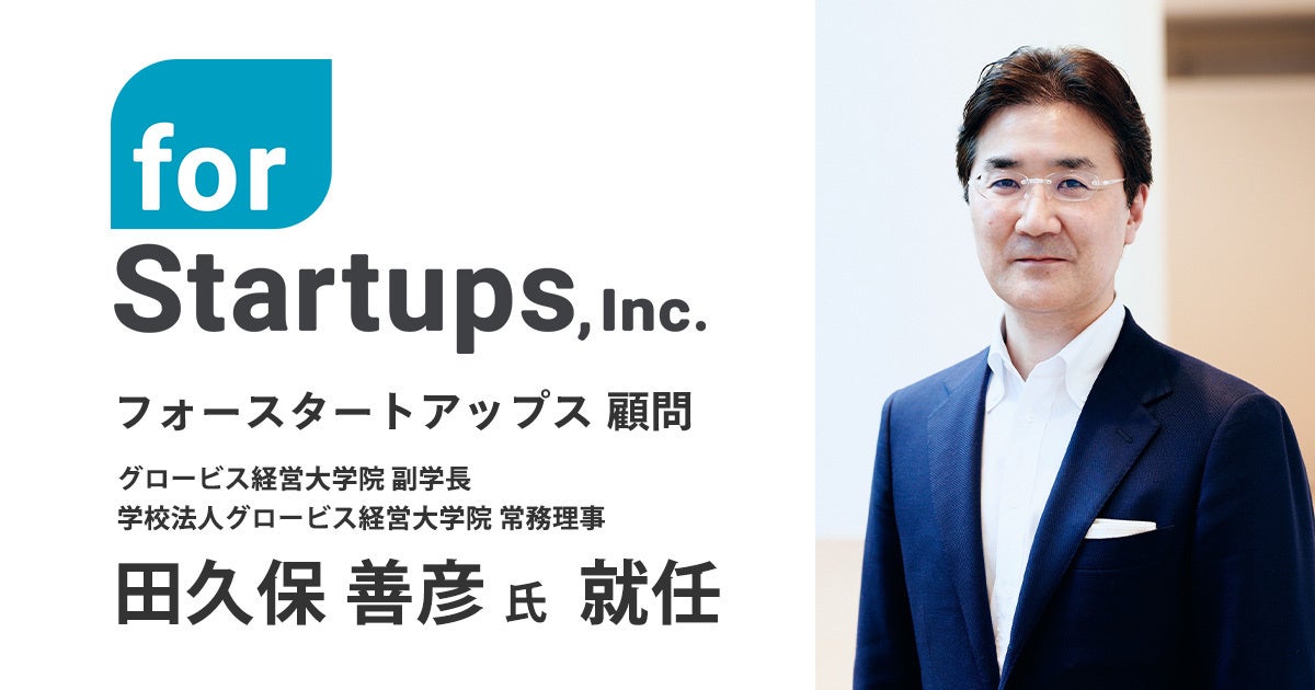 フォースタートアップス、成長産業支援の推進のため人材育成を強化 グロービス経営大学院 副学長、学校法人グロービス経営大学院 常務理事の田久保 善彦氏がフォースタートアップス顧問に就任
