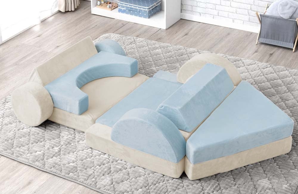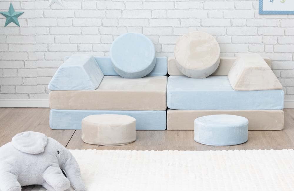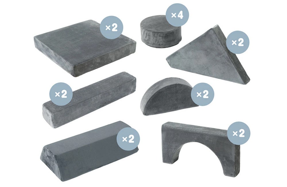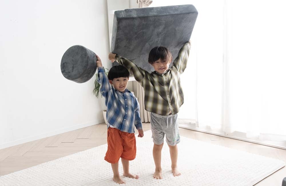 『つみきソファ』は安心して遊んでもらえるように、中材に柔らかめのウレタンを使用しております。その為、怪我の心配がなく、床に落としたりぶつけたりしても傷つくことはありません。また最も重いパーツでも1.8kgと軽量になっているのでお子様1人で安全に持ち運ぶことが可能です。また軽量なので幅広い年齢で遊ぶことが可能です。