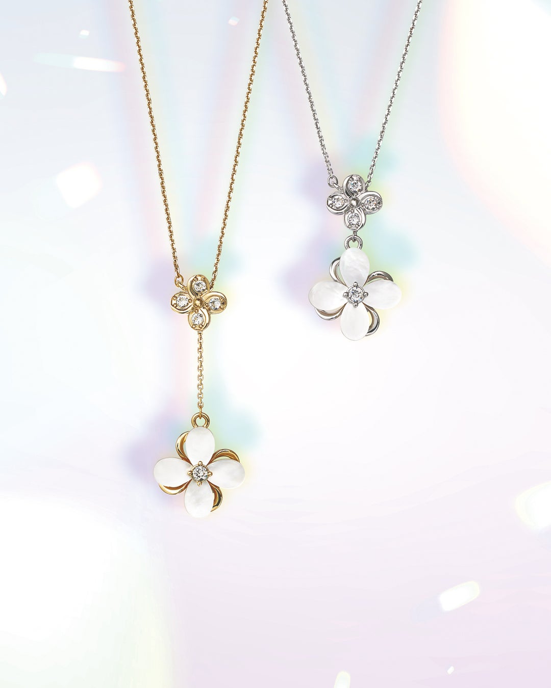 白蝶貝をたっぷり使用した、丸みを帯びた花びらが女性らしい印象のアスターモチーフのネックレス。