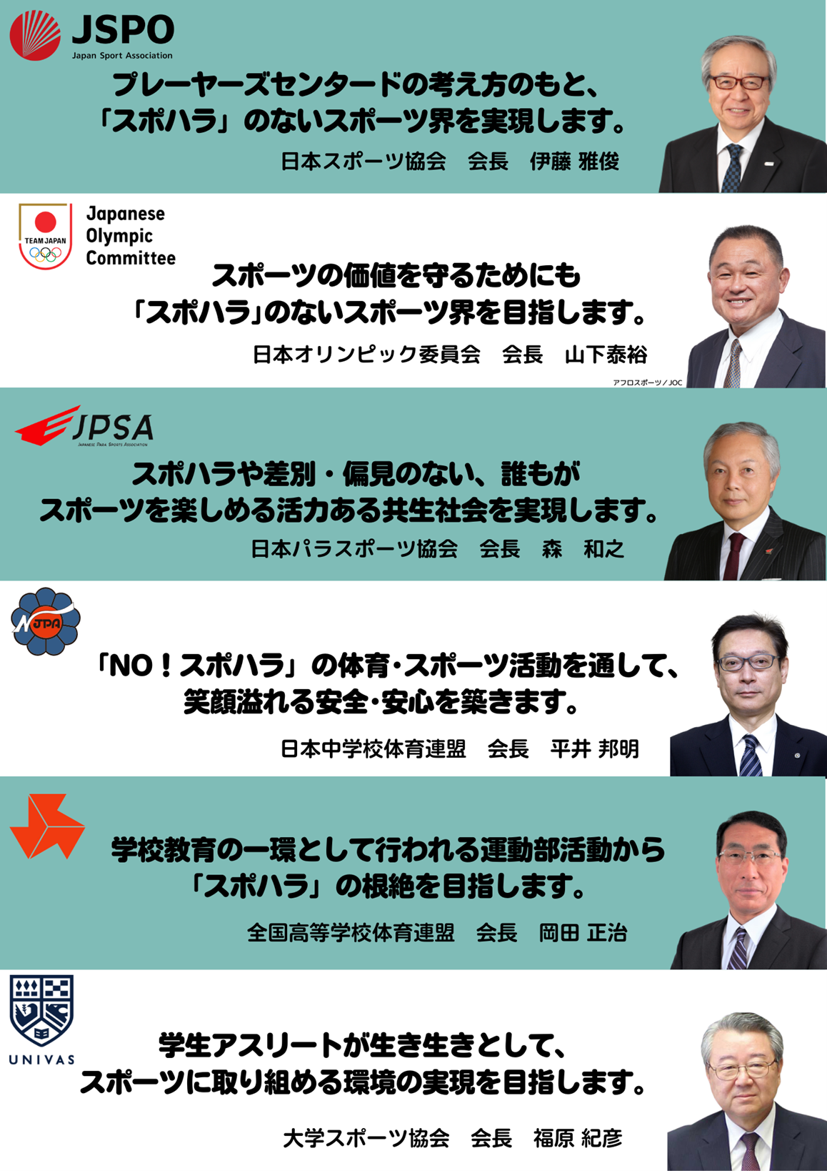※メッセージの詳細については、特設WEBサイト:https://www.japan-sports.or.jp/spohara/をご覧ください。