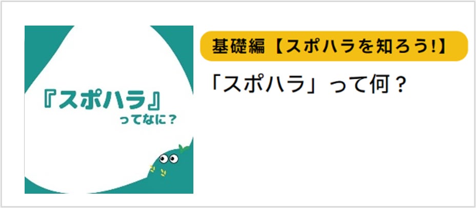 JSPOはじめスポーツ団体における「NO!スポハラ」活動に関連した取り組みを特設Webサイトで紹介します。指導者の方向けの研修会をはじめ、一般の方にも参加いただける研修会等も随時公開していきます。その他、アスリートによるリレーメッセージやSNSの投稿キャンペーン(ハッシュタグ 「#noスポハラ」)などの開催も予定しております。