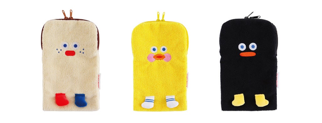 ペットボトルはもちろん、折りたたみ傘も入れられるファスナー付きケースです。あどけない表情は刺繍で表現しました。ぶらぶらとした小さな可愛い足がポイントです。