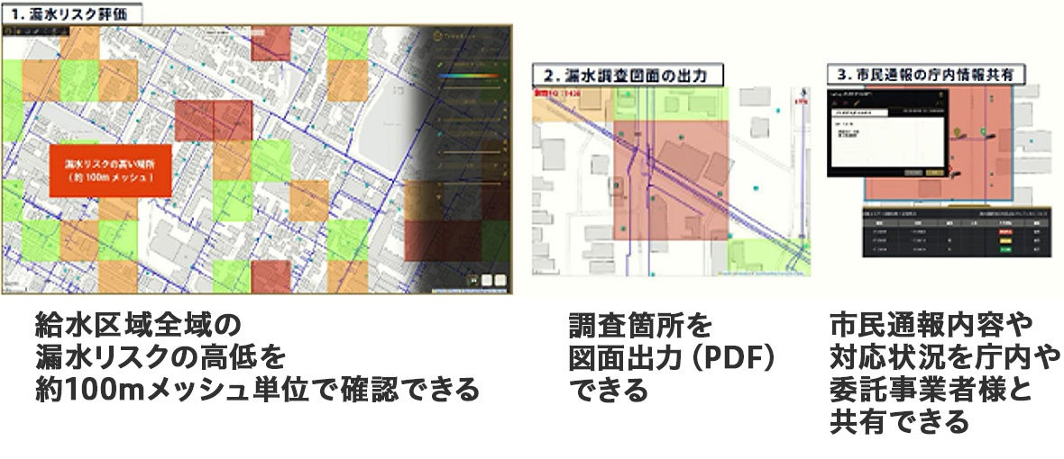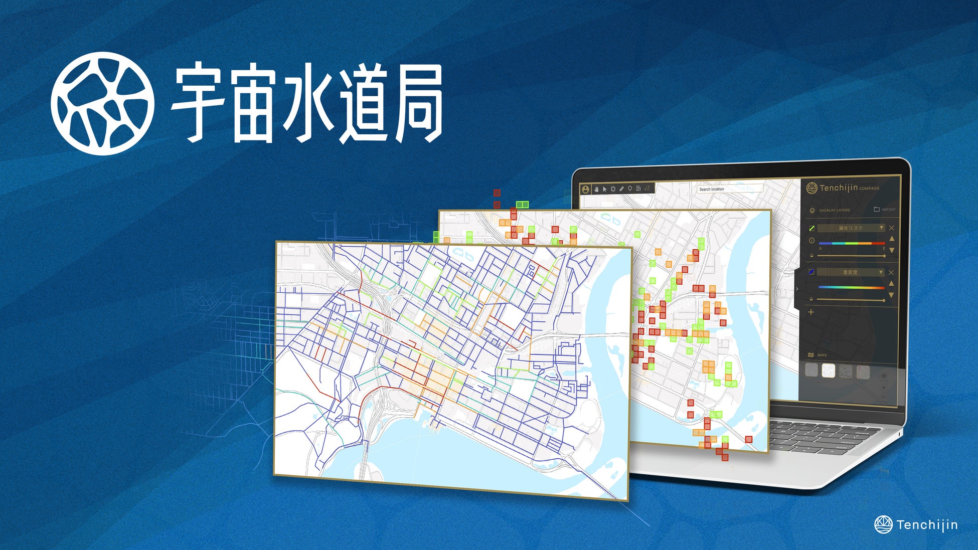 水道インフラの老朽化という社会課題に対して、水道管に関する知見を有さなくとも容易にリスクエリアが確認できる漏水リスク評価管理システム「宇宙水道局」を開発した。JAXA、NASA、ESA等の国内外の宇宙機関が保有する500基以上の衛星データから取得した地表面温度や気候、地盤データと水道事業者が保有する水道管データを AI にて調査、解析することで水道管の漏水リスクを評価する。導入自治体の例として、漏水発見効率の従来の6倍への向上と、調査費用の79%削減を実現した。