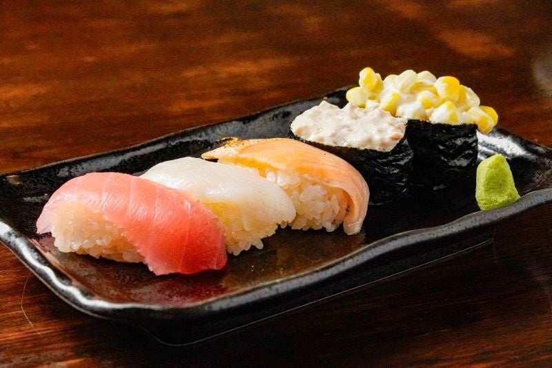今回の「食べ飲み放題」では、「寿司5貫盛り合わせ」、そして「焼き鳥盛り合わせ」をメインに、グランドメニューから人気の高い10種類をラインナップいたしました。寿司は<マグロ・炙りサーモン・真イカ・コーンマヨ・ツナマヨ>の5貫を、焼き鳥は<もも・テール・皮・つくね・野菜串>の5種を盛り合わせ、お子様から大人の方までご満足いただけるプランとなっております。