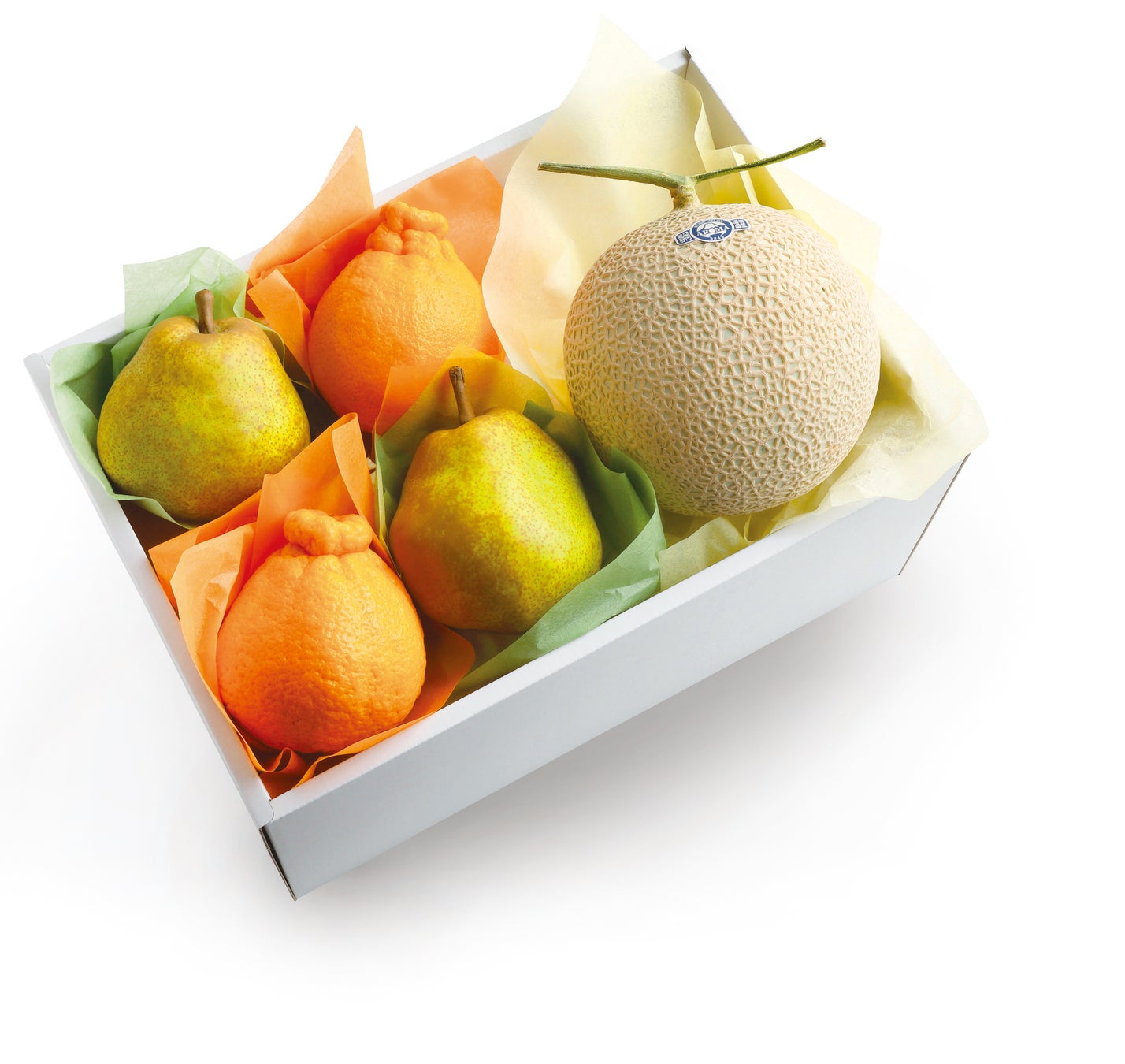 右:ラ フランス・デコポン・マスクメロン詰合せ ¥11,664(税込)