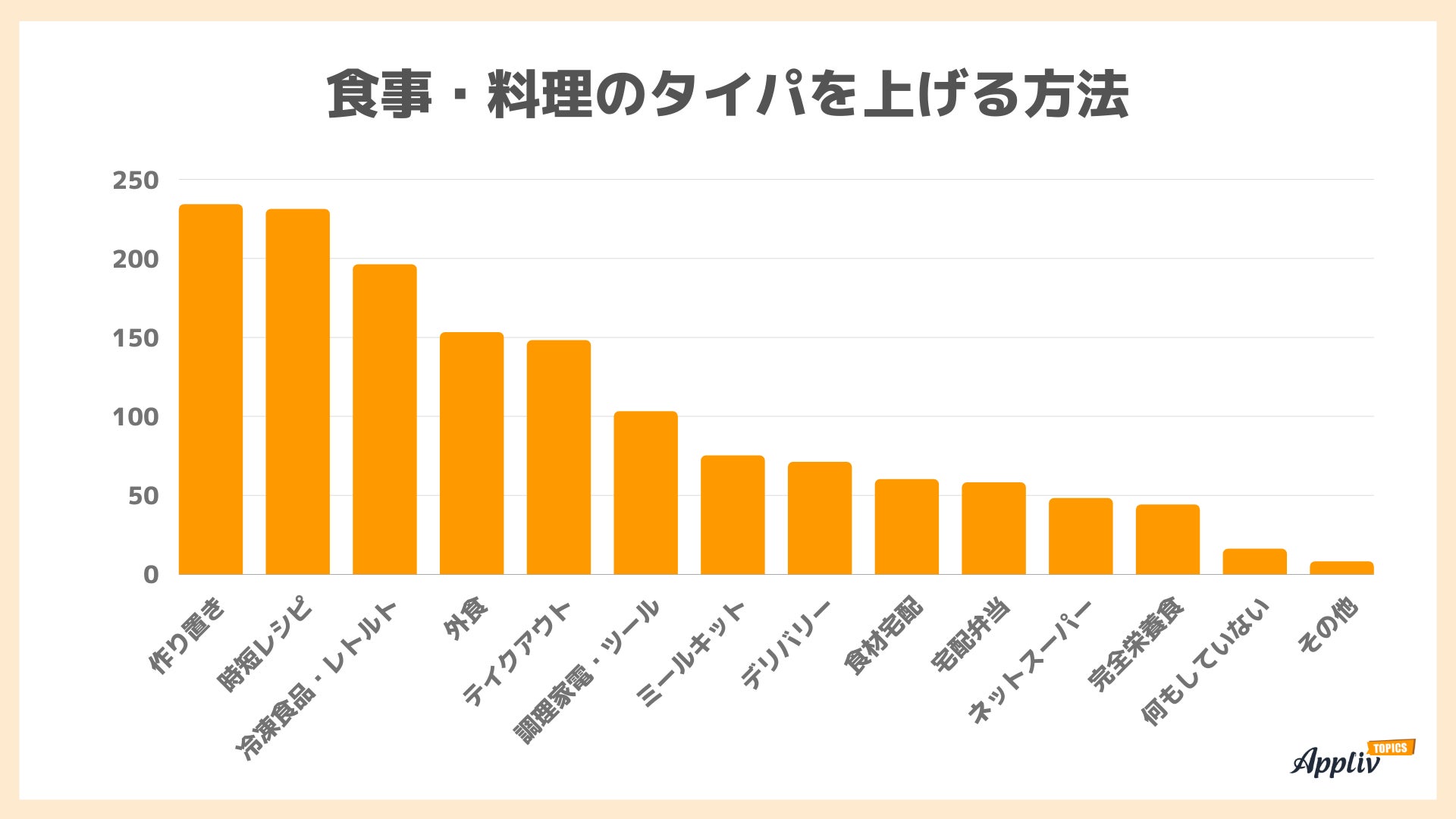 タイムパフォーマンス意識調査 若い人ほどタイパを重視 効率を求めるのは料理・掃除などの家事(Appliv TOPICS調べ)