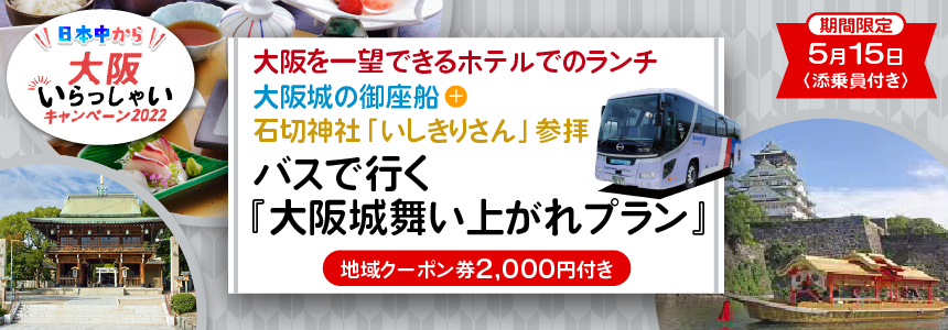 【5月15日(月)大阪出発限定】《全国旅行支援》〈添乗員付き〉大阪城のお堀クルーズと散策+生駒より大阪一望しながらランチ+石切神社参拝 バスで行く『大阪城舞い上がれプラン』
