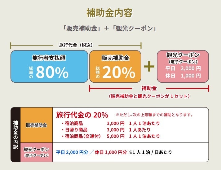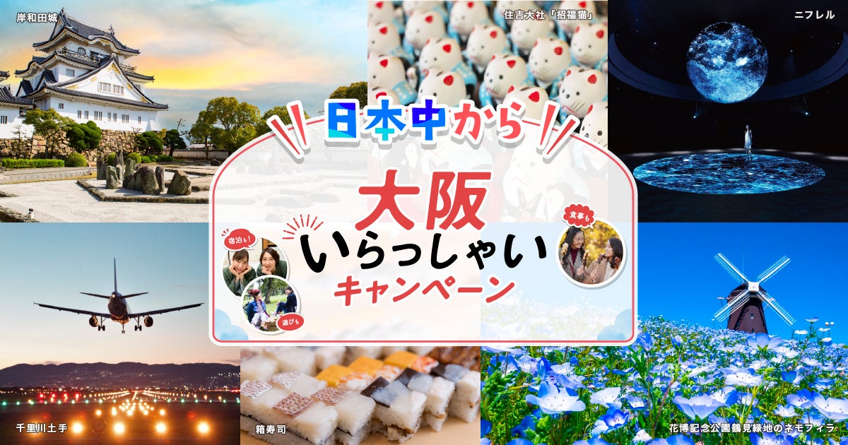 大阪府の全国旅行支援「“日本中から”大阪いらっしゃいキャンペーン」を適用可能。旅行代金20%割引!+大阪府地域クーポン付2,000円付き