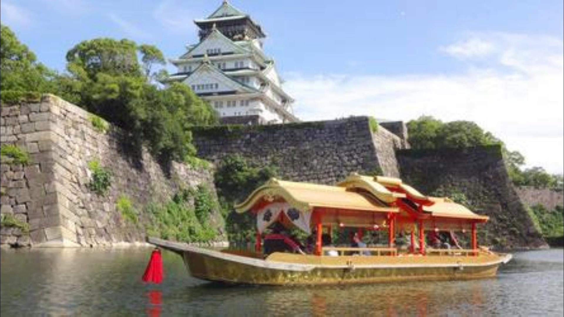 ①お城のお堀を船でまわる大阪城御座船・大阪城散策。
