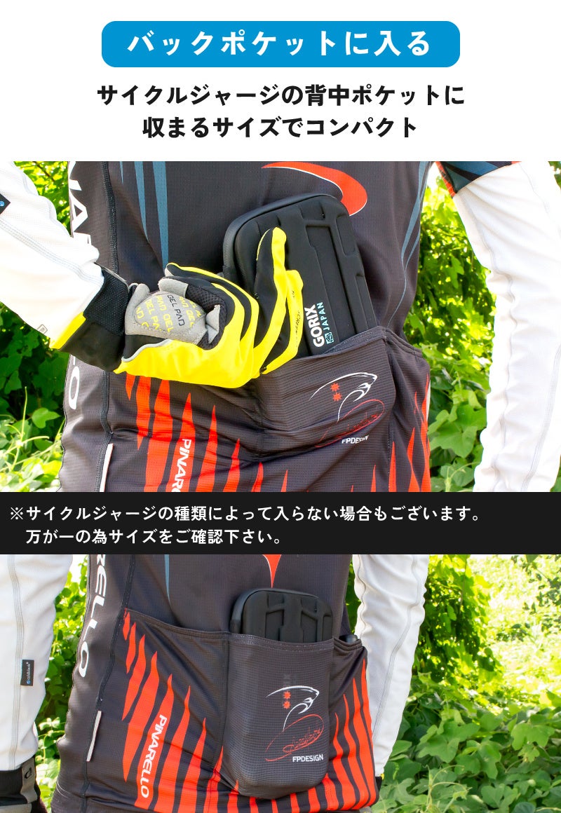 サイクルジャージのバックポケットに収まるサイズでコンパクト。