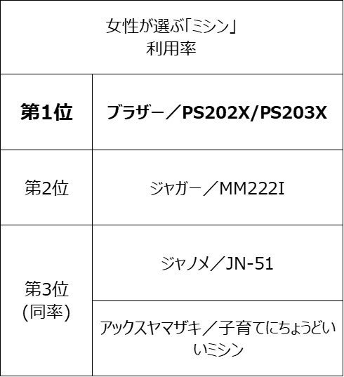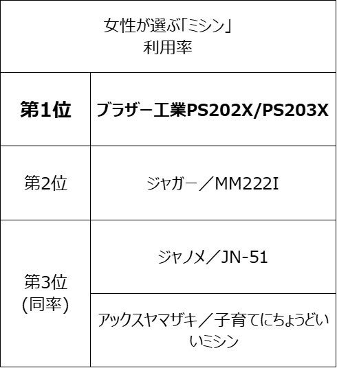 ◆女性が選ぶ「ミシン」ランキング、利用率1位は「ブラザー工業/PS202X/PS203X 」