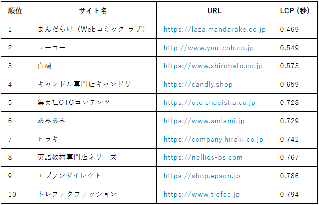 Amazon越えが135サイトで大幅増 まんだらけ(Webコミック ラザ)LCP 0.469秒を達成
