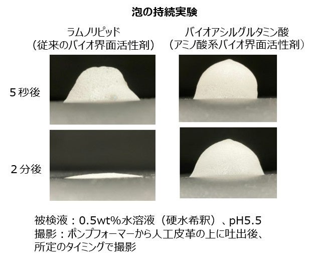機能面では、従来のバイオ界面活性剤が持つ泡立ち、色・においといった課題を解消し、アミノ酸系界面活性剤が持つ肌へのやさしさとあわせて、持続可能でありながら機能性を備えた化粧品素材の製法を開発しました。本技術で製造される「バイオアシルグルタミン酸」は、石油・パーム油由来の界面活性剤に代わる新たな選択肢として、シャンプーや洗顔料など幅広い化粧品分野での展開が期待されます。肌への刺激を抑えつつ、自然な泡立ちとほぼ無色・無臭の仕上がりを実現し、化粧品の品質向上と顧客満足度の向上に貢献していきます。