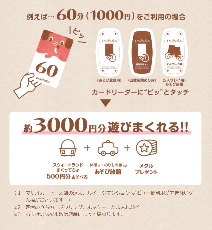 「よくばりパス」は、30分500円、60分1000円(価格は税込)で、様々なゲーム機を遊びまくれる日本初のおトクなサービスです。