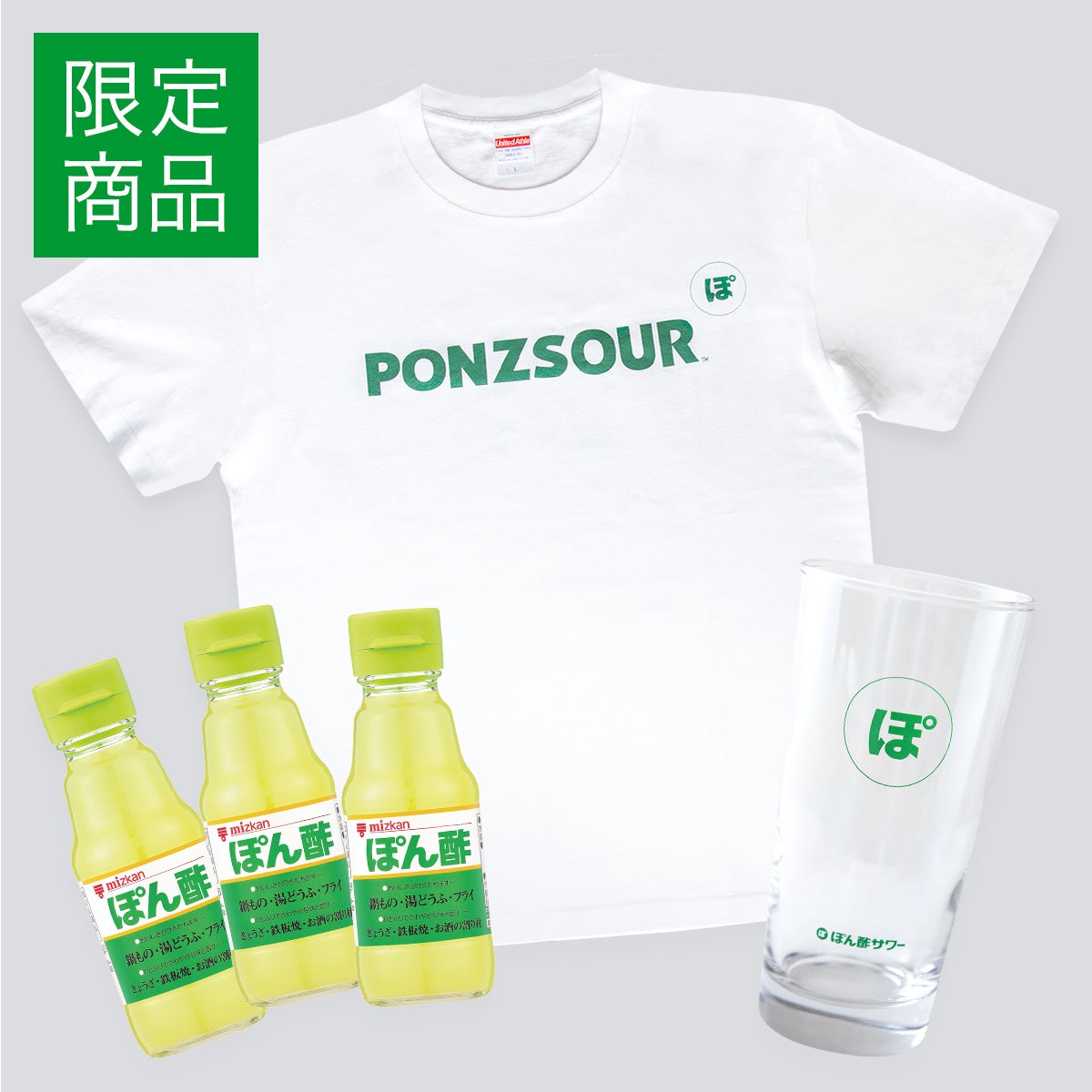 ●【ミツカン通販限定】ぽん酢サワーコンプリートセット(「ぽん酢」150ml×3本、グラス1個、Tシャツ1枚)