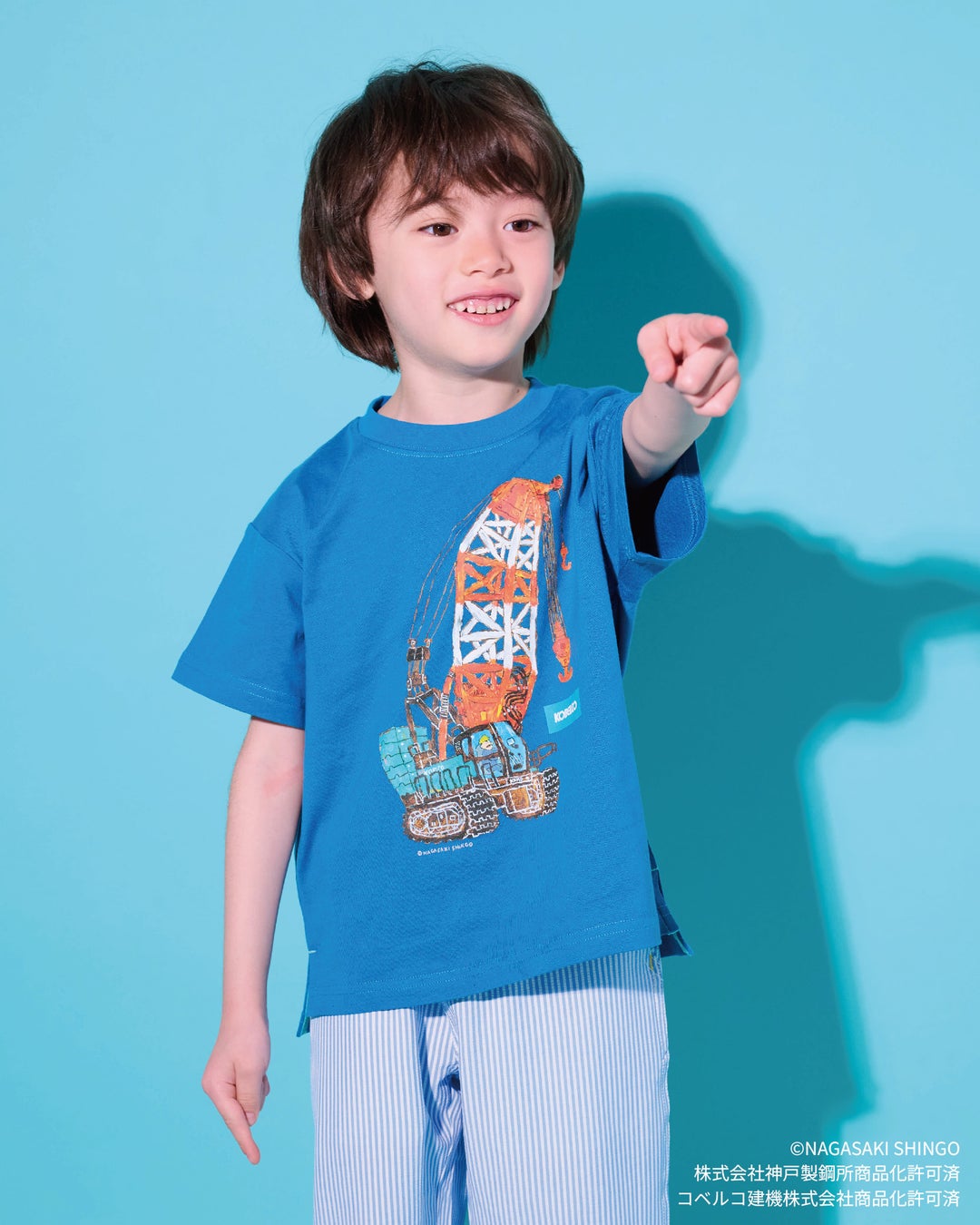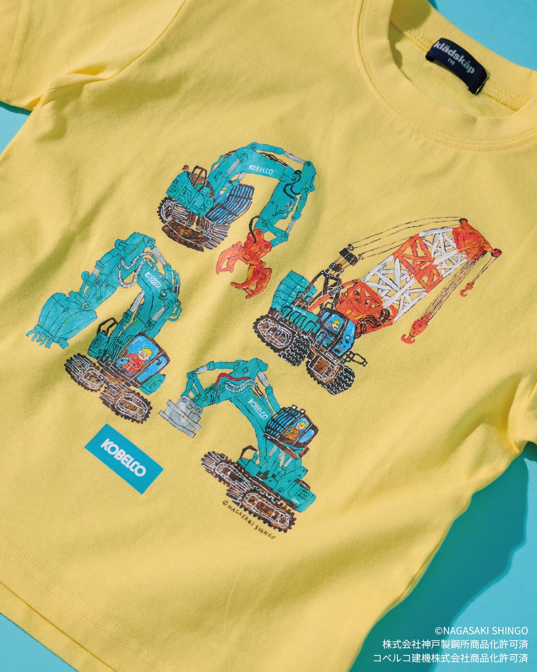 建設機械メーカー「コベルコ建機株式会社」と初めてコラボレーションしたTシャツは、カラーバリエーションで描かれた重機が異なるアソートデザインで登場。イラストは、「第15回 リブロ絵本大賞」を受賞したこともある、大人気絵本作家の「長崎真悟さん」が担当しています。