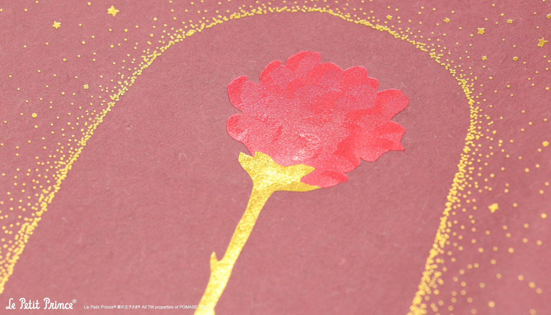 輝きでいっぱいの星の王子さまの世界を、ROKKAKUならではのきらめく箔押しと共にお楽しみください。