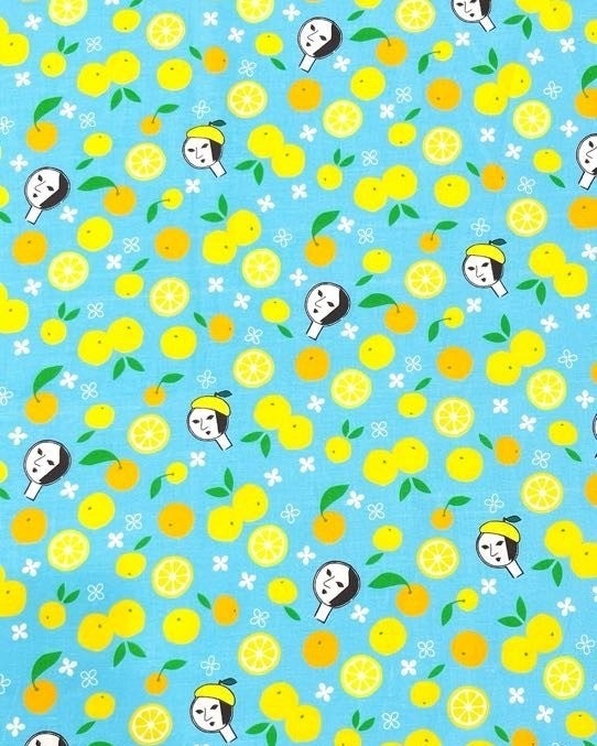 ■中国製 コットンシーチングインクジェットプリント生地 よーじや ゆずつやや