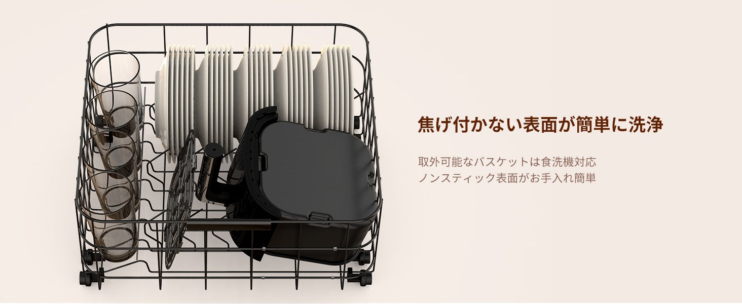 5L大容量&簡単な後片付け - コンパクトなデザインで5Lの大容量を誇り、家族向けにも便利です。バスケットは簡単に取り外せ、洗浄が簡単です。食洗器の使用も可能で、お手入れが楽ちんです。