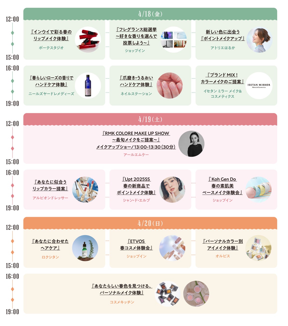 期間中、14のブランドが春の新作コスメなどを展開し、お客様に合わせたタッチアップやサービスを通して個性を引き出す、最高の「ジブンイロ」を提案します。