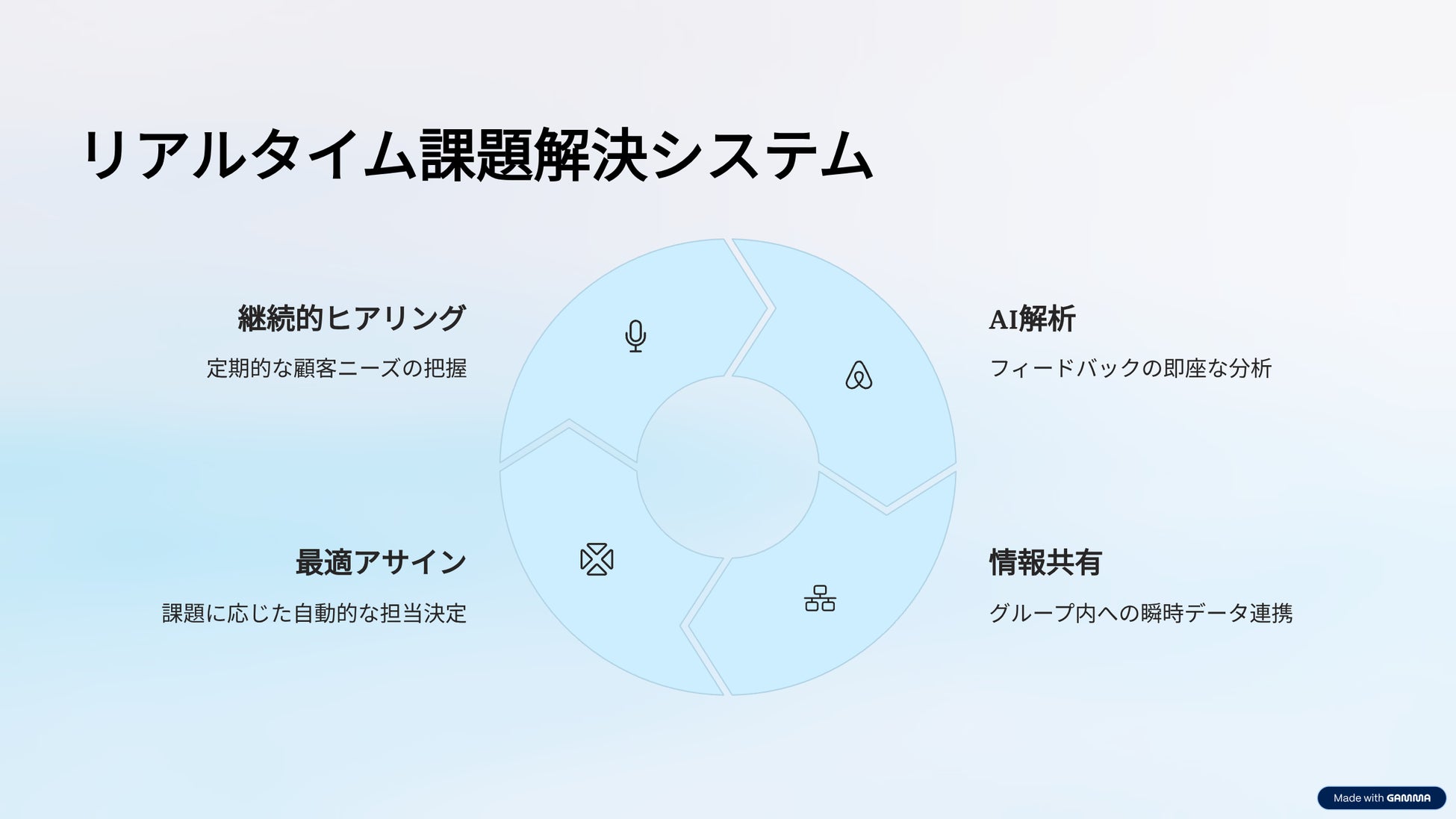 さらに、既存顧客のニーズや課題は定期的にヒアリングされるだけでなく、AIを活用したフィードバック解析により常時キャッチアップされます。