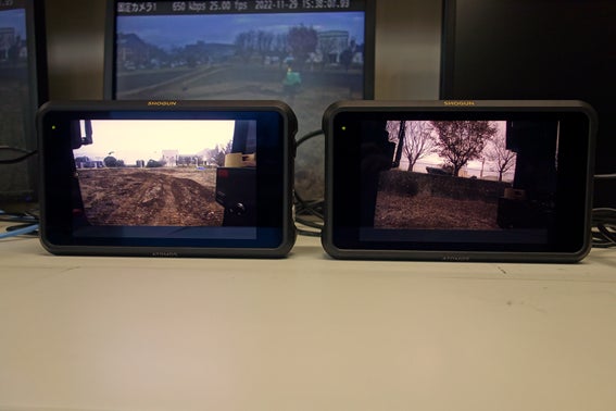 地域の企業や自治体などの様々な主体が個別ニーズに応じて構築可能なローカル5Gに注目し、屋外実験ヤードに構築されたローカル5Gシステムを用いて2022年6月に実証実験を行いました。屋外実験ヤード内での高い上り回線の伝送速度、低遅延性能を確認した結果を踏まえ、この度は2台の建機の自動走行の実証実験を2022年11月に実施いたしました。実験中に建機上の4Kカメラ映像を、エンコーダを用いて伝送し、遠隔操作室にあるデコーダ側の出力映像の品質を確認いたしました。