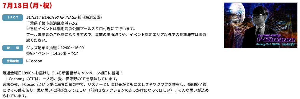 ※番組イベントは稲毛海浜公園プール入り口付近にて行います。