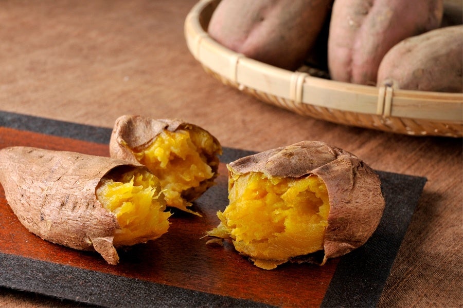 種子島産の安納いもは、非常に甘みが強く、輝く黄金色たっぷりの水分が特徴で、スプーンで