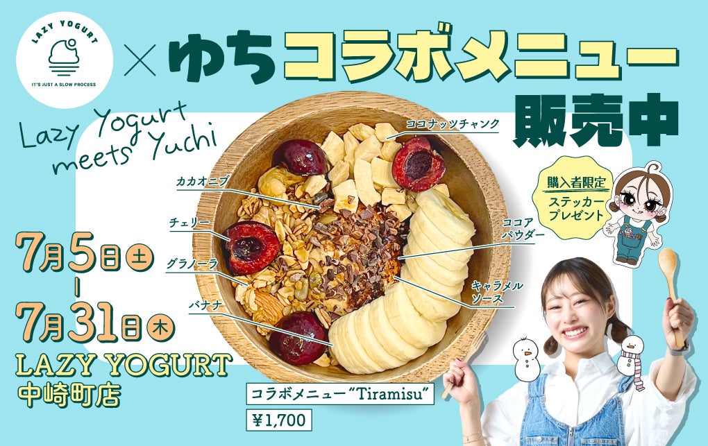 販売開始の7月5日(土)には、ゆち유치が1日店長としてLAZY YOGURT中崎町店にて登場!