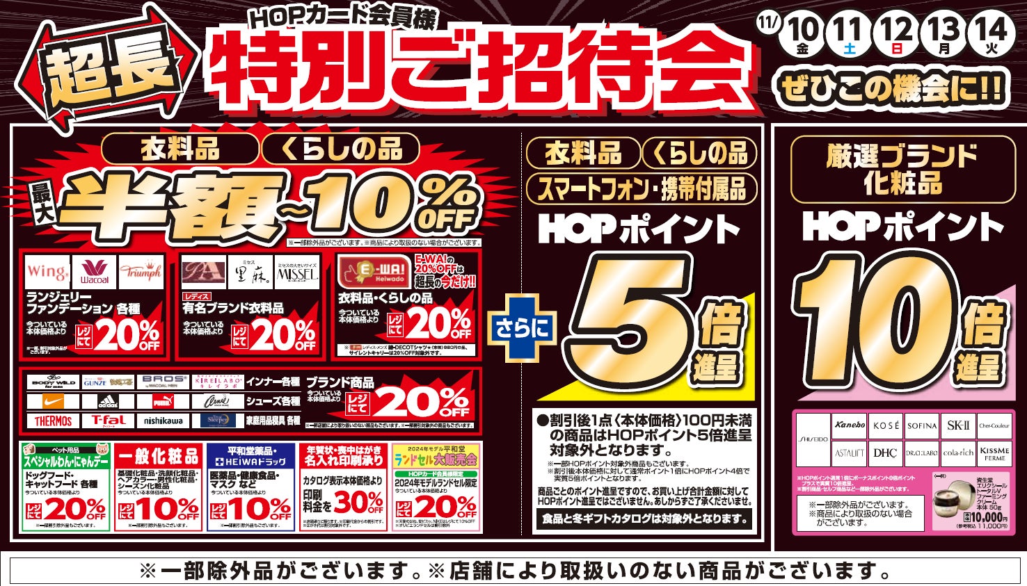 店舗限定企画 衣料品・くらしの品がHOPポイント5倍進呈&お買い得! 11月10日(金)よりスタート お得がいっぱいの特別な5日間