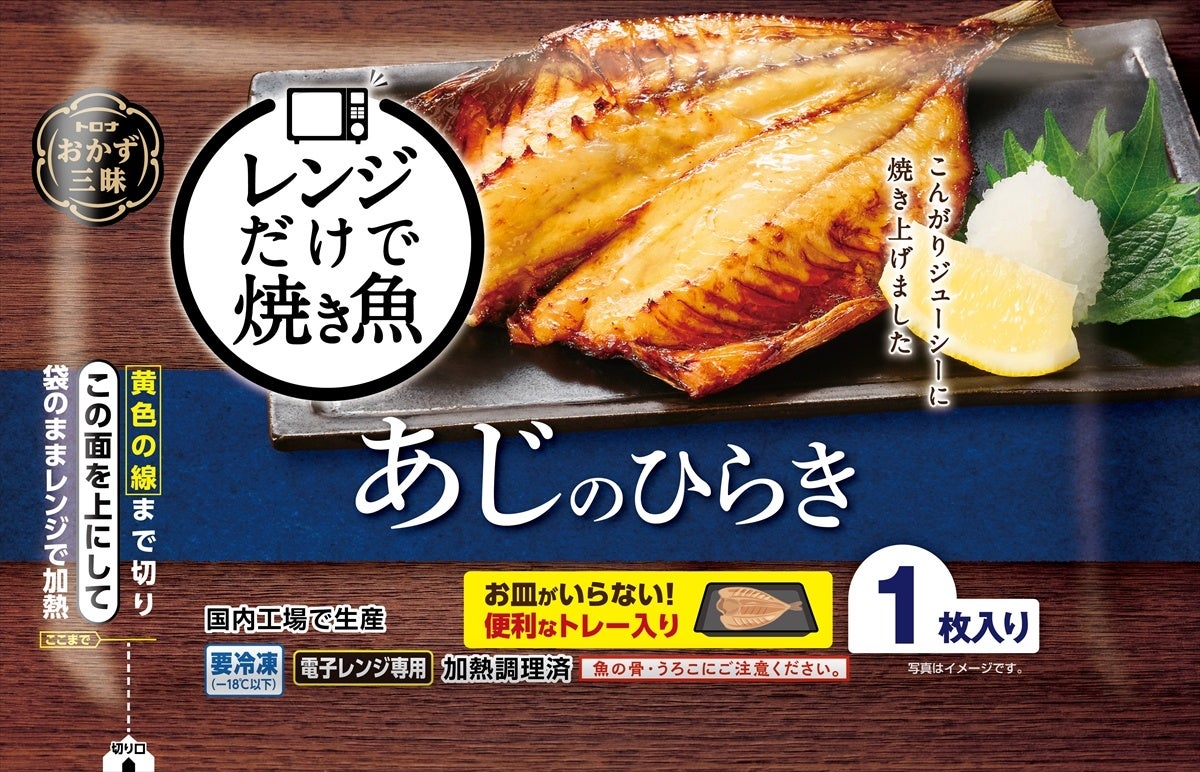 調理や後片付けが面倒な焼き魚をお手軽にお楽しみいただけるよう、より簡便性にこだわった『レンジだけで焼き魚』シリーズを発売します。お皿の代わりになる便利なトレー付きで、袋ごとレンジで温められるため、時間のない朝や仕事帰りの夜に、手間なく本格焼き魚をお楽しみいただけます。