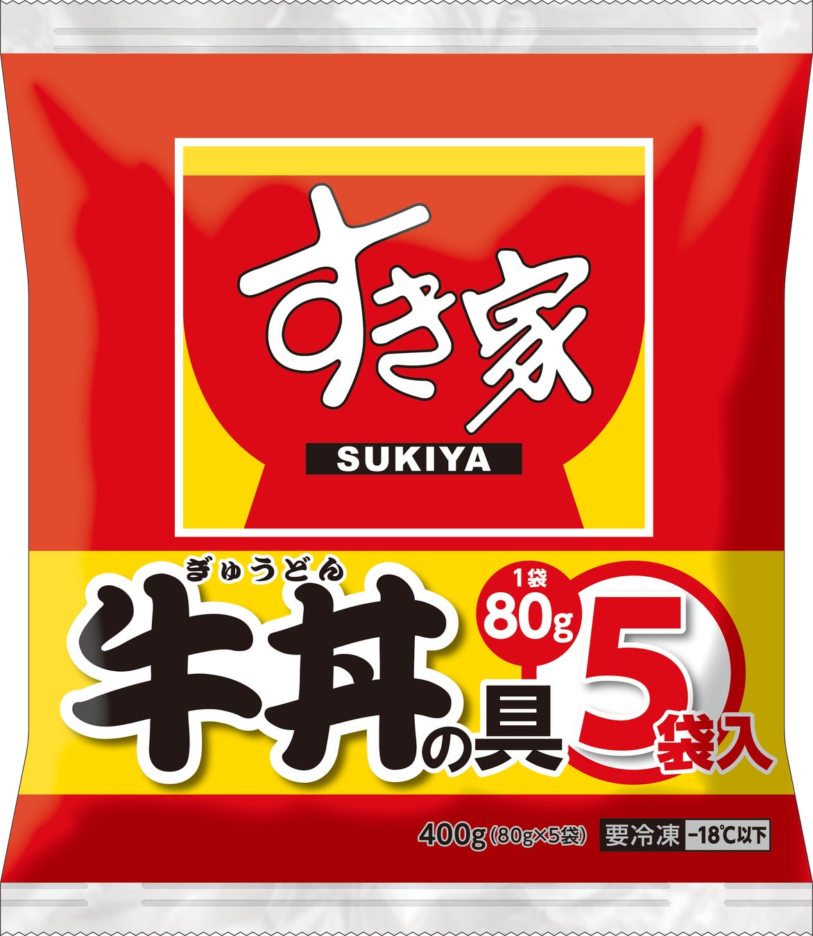 すき家“秘伝のたれ”で丁寧に煮込んだ牛肉と玉ねぎをお楽しみいただける「すき家 牛丼の具」に80g×5袋の新規格が登場。冷凍庫にストックしておけば、もう一品ほしい時に大活躍です!