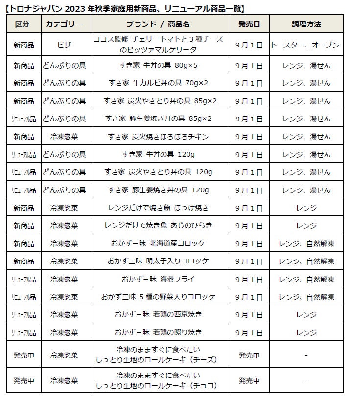 【トロナジャパン】新商品・リニューアル商品のご案内 ファミレス「ココス」が監修したピッツァなど、新商品が多数登場!~トロナジャパン2023年秋季家庭用冷凍食品~