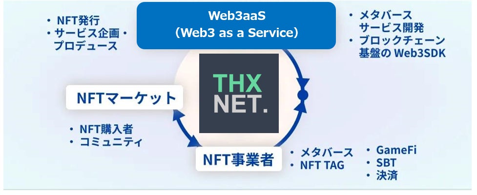 日本発のワンストップ型ブロックチェーンネットワーク「THXNET.」を提供し、Web3・アズ・ア・サービス(Web3aaS)モデルで企業がWeb2.0からWeb3への移行を容易にすることに焦点を当て、ビジネス中心のWeb3サービスマーケットプレイスを確立することを目指して企業のWeb3化を支援しています。国内外企業とのアライアンスにより企業のパートナーとしてスムーズなWeb3化を伴走支援いたします。