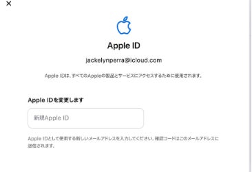 Step2:以下の画面で変更したいID(アドレス)を入力して「Apple IDを」変更を選択します。