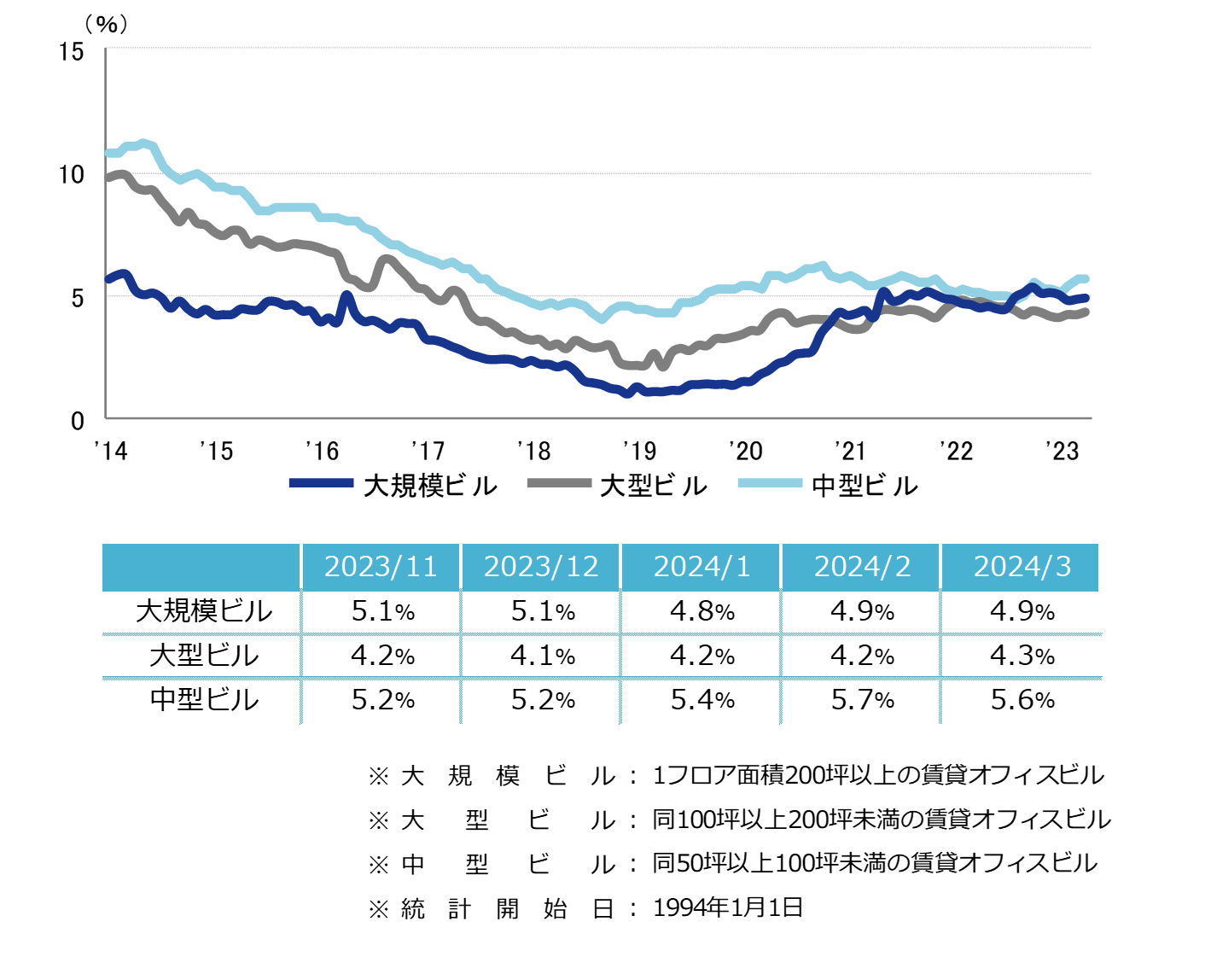 <空室率の推移(6大都市 大規模ビル)>