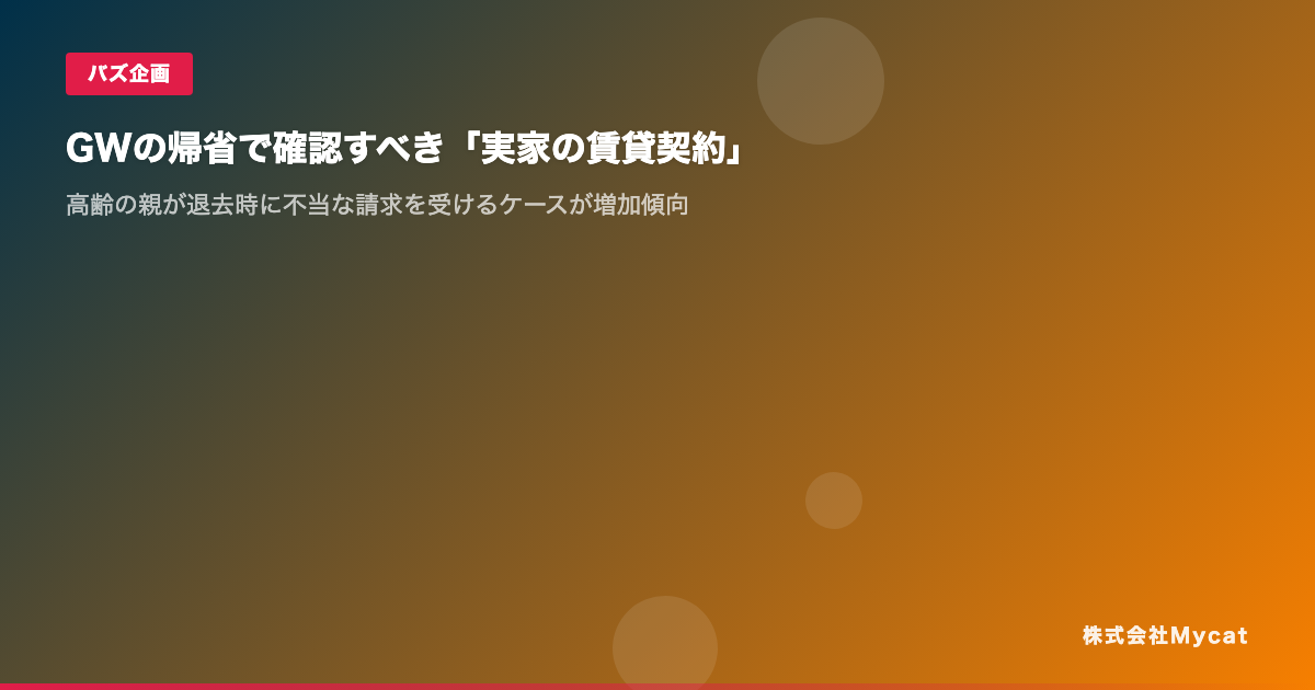 GWの帰省で確認すべき「実家の賃貸契約」── 高齢の親が退去時に不当な請求を受けるケースが増加傾向