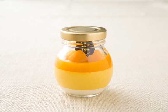 マンゴープリンの上に、ココナッツソース、その上に、完熟マンゴーが層を成すトロピカルな一品。アロエのコンポートも一緒に入り、みずみずしい食感です。