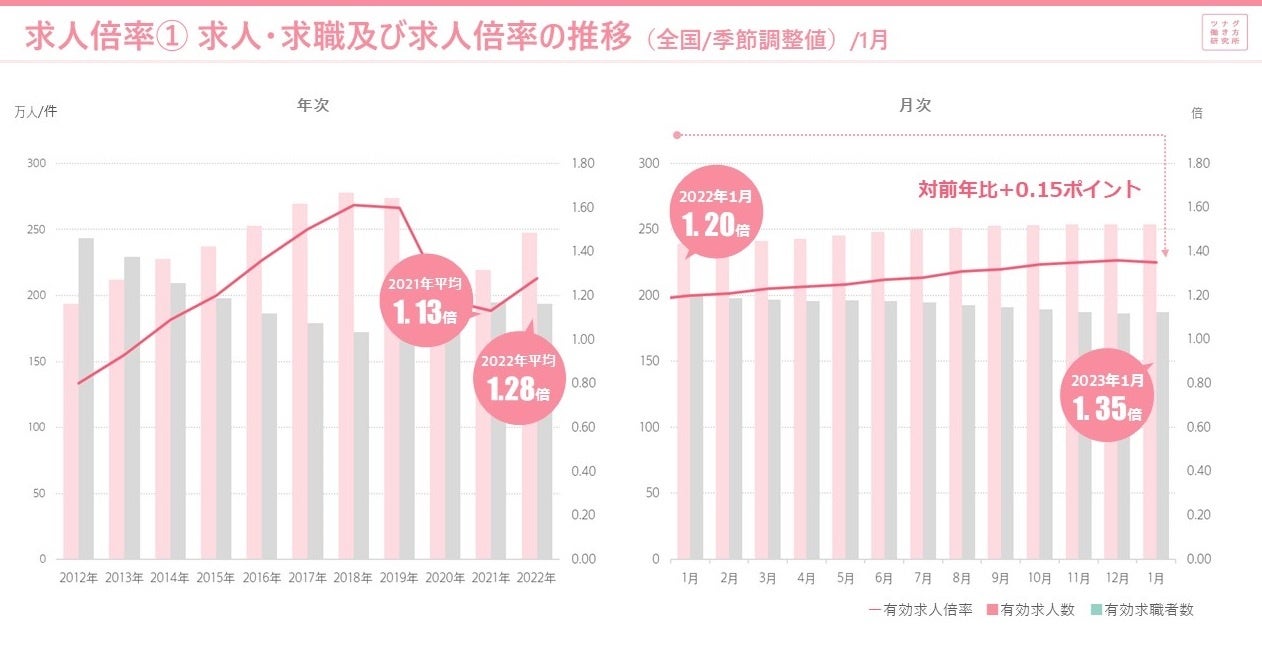 2023年1月度の有効求人倍率は1.35倍。完全失業率は2.4%/労働市場データレポート(2023年1月度版)