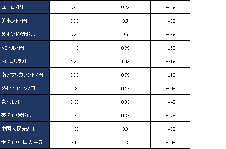 ■キャンペーン対象時間におけるスプレッド(赤枠は今回追加となる通貨ペア)