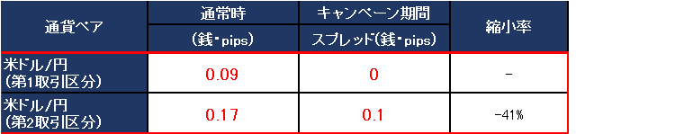 ~米ドル/円1,000,000通貨単位まで0.1銭、1,000通貨単位まで驚きの0銭で提供~