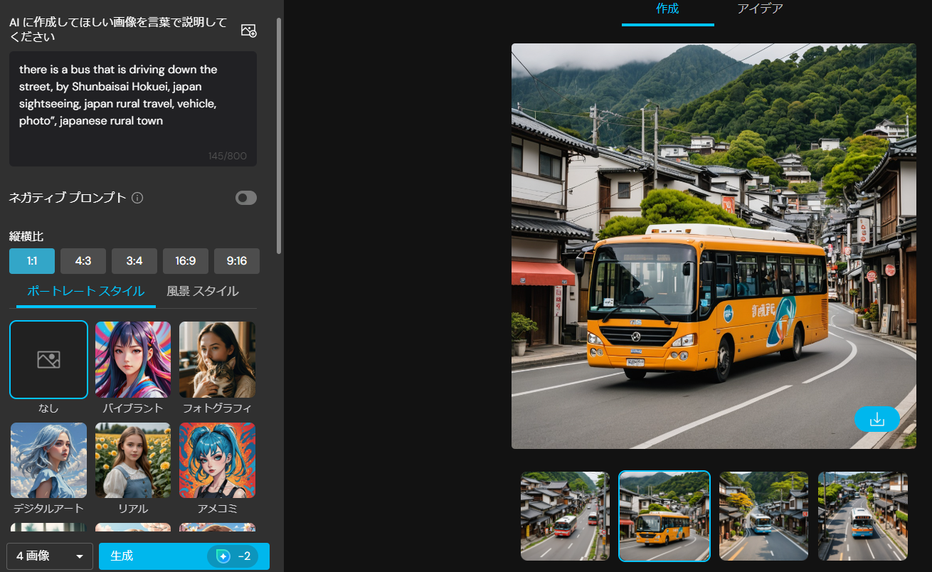 そこで作ったプロンプトを使用して、さらに新しい画像を生成することもできます。