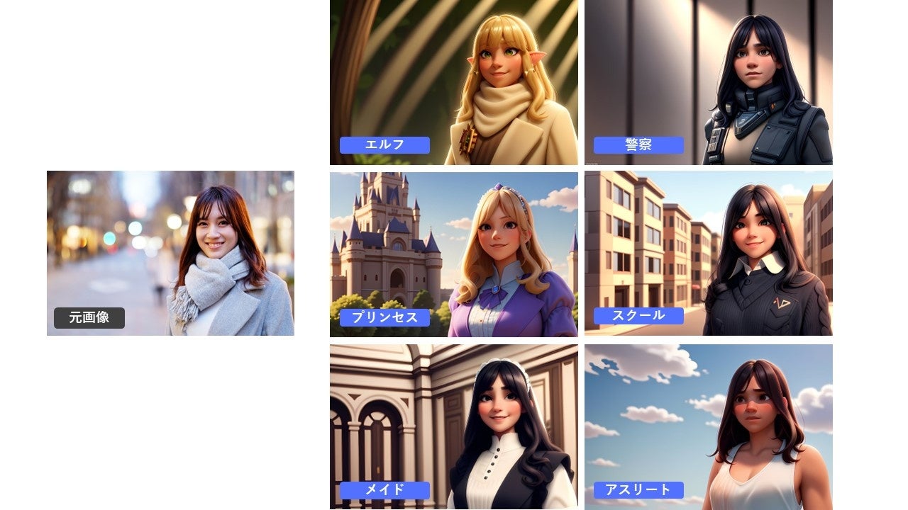 写真をアップロードするだけで、まるで海外のアニメキャラのようなイラストを生成してくれる機能です。