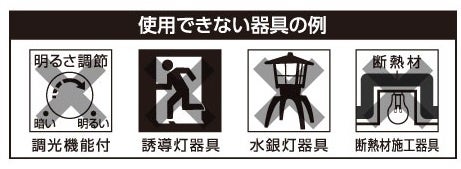 ・調光機能のついた電球器具や回路 [調光:電球の明かりを変える機能] (100%点灯も使用不可)