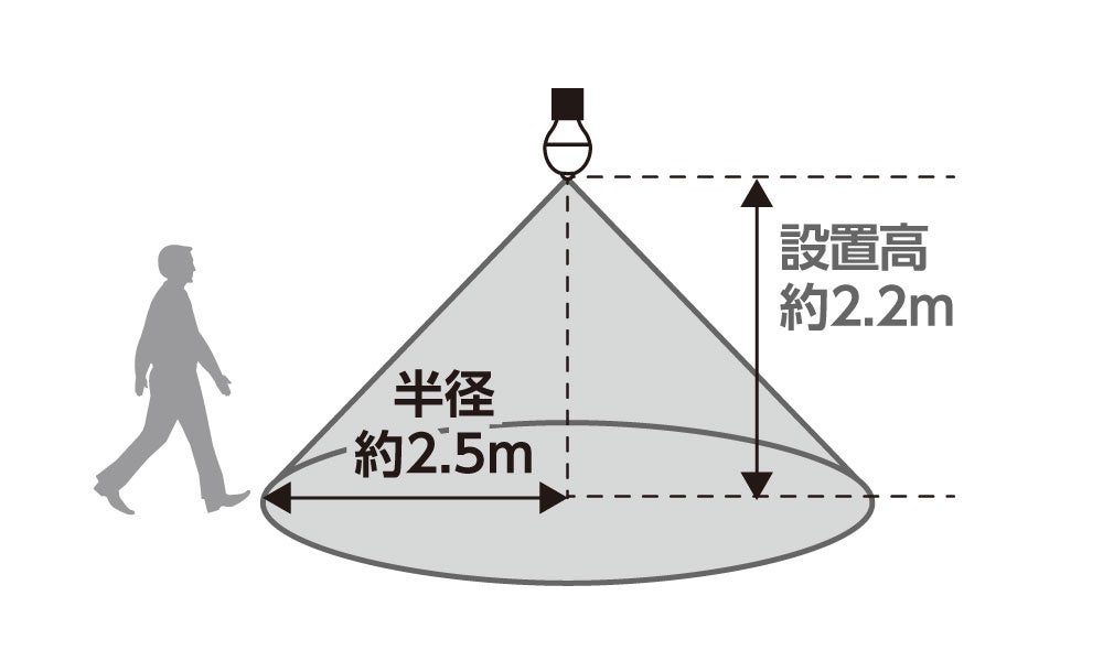 ※人や熱源などによる温度差を動きとしてとらえます。検知範囲内に人がいなくても点灯する場合があります。