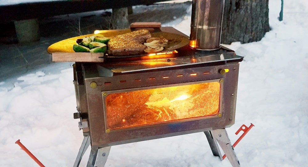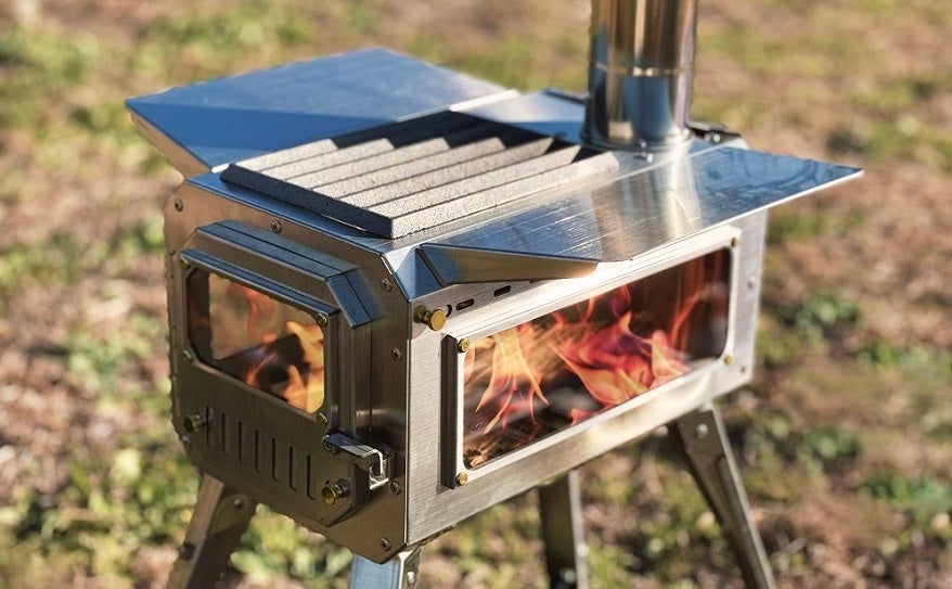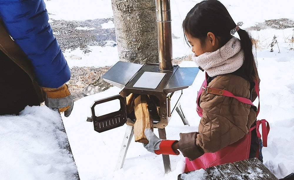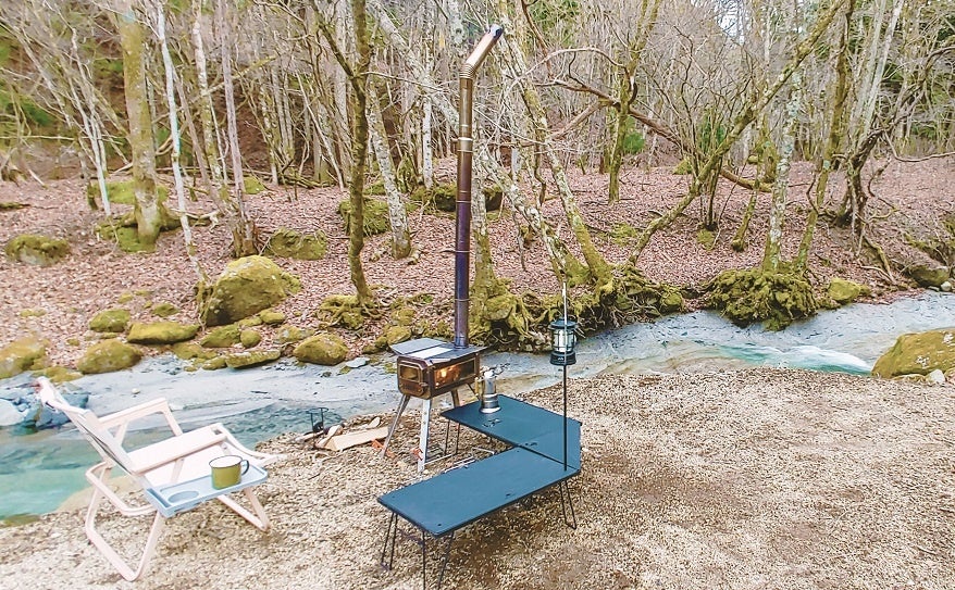 石油ストーブやカセットガスストーブもいいけれど、荷物をできるだけコンパクトにまとめたいなら、調理しながら暖を取ることができるコンパクトな薪ストーブ一択です。薪ストーブがあれば、薪は現地で調達すればいいだけ! という手軽さも人気の秘密です。